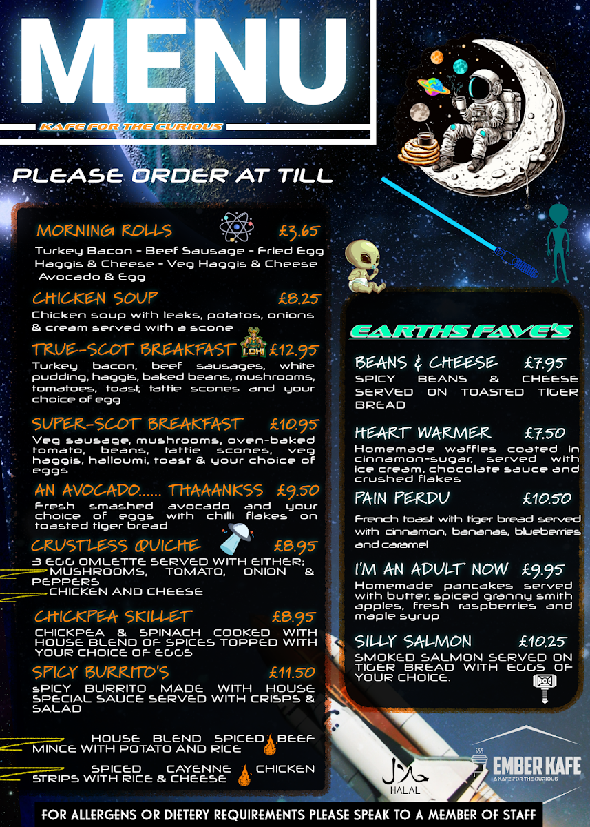 Welcome to Ember Kafe, a cozy haven nestled in Inverness at 19 Queensgate. This unique café is not just the first halal café in the area, it’s a vibrant hub where delicious food and a warm atmosphere converge. With a diverse menu featuring scrumptious brunch items like tacos, burritos, and omelettes served with parathas, every dish promises quality and flavor. Coffee enthusiasts will revel in their robust brews, including delightful matcha drinks and the oh-so-comforting Karak Chai.